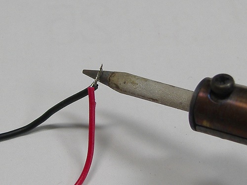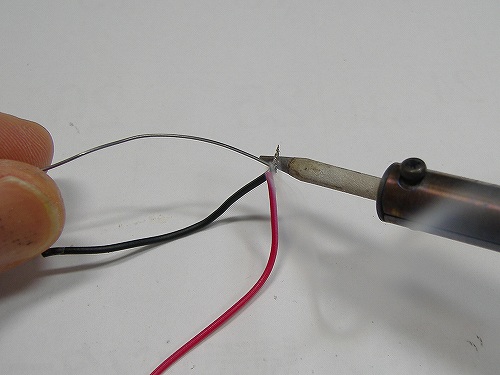 ハンダが解けるので線同士をくっつけてハンダコテを離します。