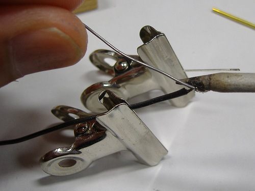 今回は被膜つきの線でいきます。一応、用心のために頑丈な作り方をしてますがエナメル線を使いたい方はそっちでOK。