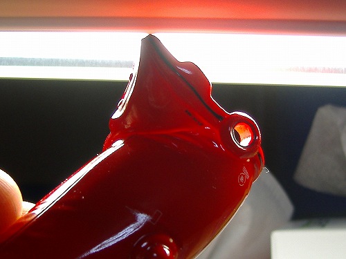 今回は肩のクリアーパーツ2個に対して1つのLEDを仕込んで節約します。穴が近いのでちゃんと光ります。