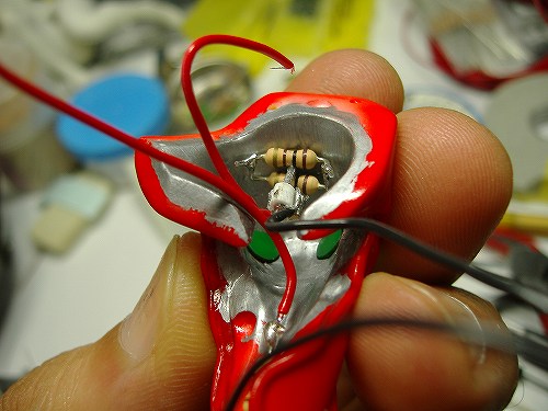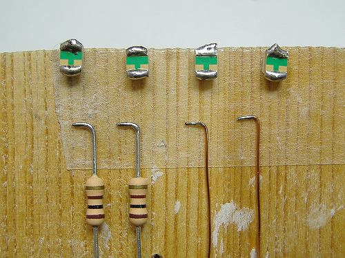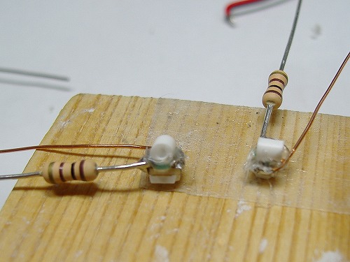 これはLED、抵抗、エナメル線に下ハンをほどこしたところ。