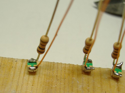 抵抗は線が剥き出しになっているのでキットに設置する場所を考えてから切る。
