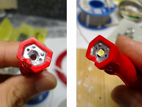 その際クリアパーツとLEDは直角にあたるのが理想ですが斜めでも大丈夫です。