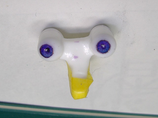 顔に突っ込んでホットボンドで固定して出来上がり。